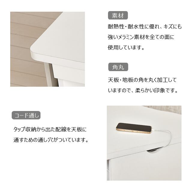◆耐熱性・耐水性に優れ、キズにも強いメラミン素材を全ての面に使用しています。