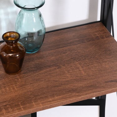 全体をスッキリ見せるスチールと組み合わせることで、リアルな木目模様がプリントされた棚板がよく引き立ちます。