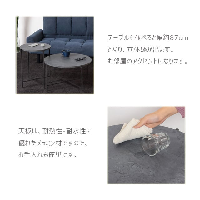 ◆2つのテーブルを並べると幅約87cmとなり、立体感が出ます。お部屋のアクセントになります。