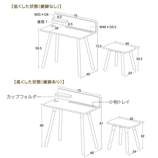 (デスク)約 幅75×奥行40×高さ81(73.5)cm