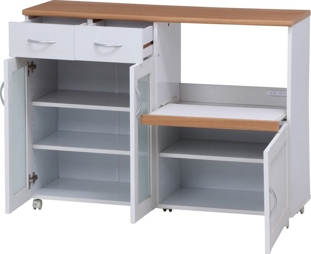 2つの戸棚に分かれていて、細やかな収納が可能。食器や缶詰、お菓子などスッキリ収納できます。