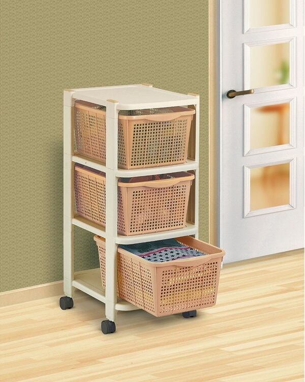 使い勝手の良いバスケット付収納ワゴン。